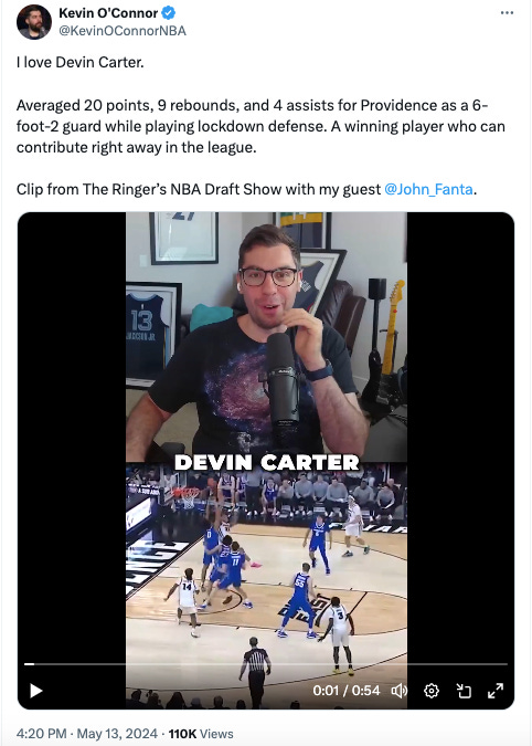 The NBA season came to a close earlier this week but for some of us who prefer the college game to the pros, it’s been NBA draft season since UConn cut down the nets in Phoenix back in April. This year, Providence’s Devin Carter will make history as the first lottery pick of the Kim English era, and the first to come out of Providence College since Kris Dunn was drafted 5th overall by the Minnesota Timberwolves in 2016. While I don’t expect Carter to be a top 5 pick, he will certainly be selected within the lottery (top 14) and has a very real chance of sneaking into the top 10.